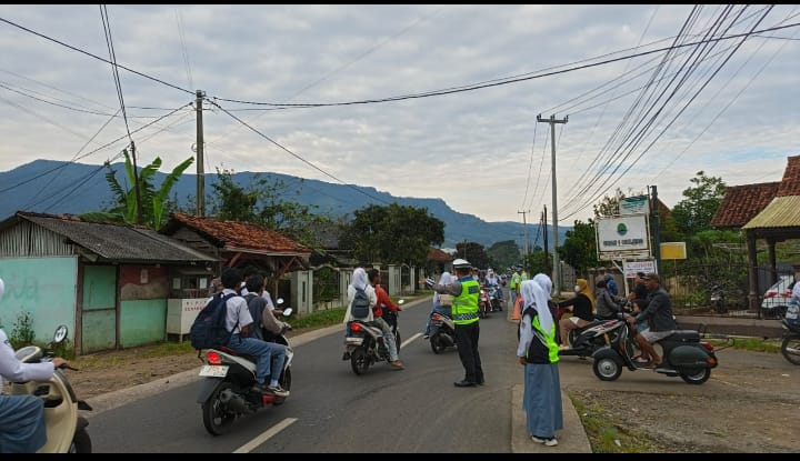 Kegiatan pengaturan lalin kali ini dilakukan di jalur masuk SMAN 1 Cikijing yang pada saat itu mengalami peningkatan aktivitas masyarakat, Selasa (26/08/2025)