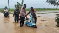 Polisi Bantu Masyarakat Akibat Banjir dari Sungai Ciasem Subang Yang Meluap