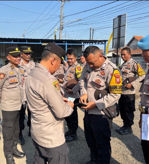 Pemeriksaan kerapian personel dilakukan usai apel yang dipimpin Kapolsek Jatiwangi, AKP Rudy Djunardi, di halaman Mako Polsek Jatiwangi, Rabu (23/7/2025).