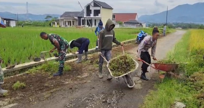 Majalengka // Zonakabar.com – Dalam rangka menjaga kebersihan lingkungan, Bhabinkamtibmas Polsek Cikijing Polres Majalengka Polda Jabar Bripka Achmad Supriyono bersama Anggota Koramil 1705 Koptu Harry Pramono dan warga sekitar bergotong royong dalam kerja bakti membersihkan jalan di Desa Banjaransari, Kecamatan Cikijing, Kabupaten Majalengka.