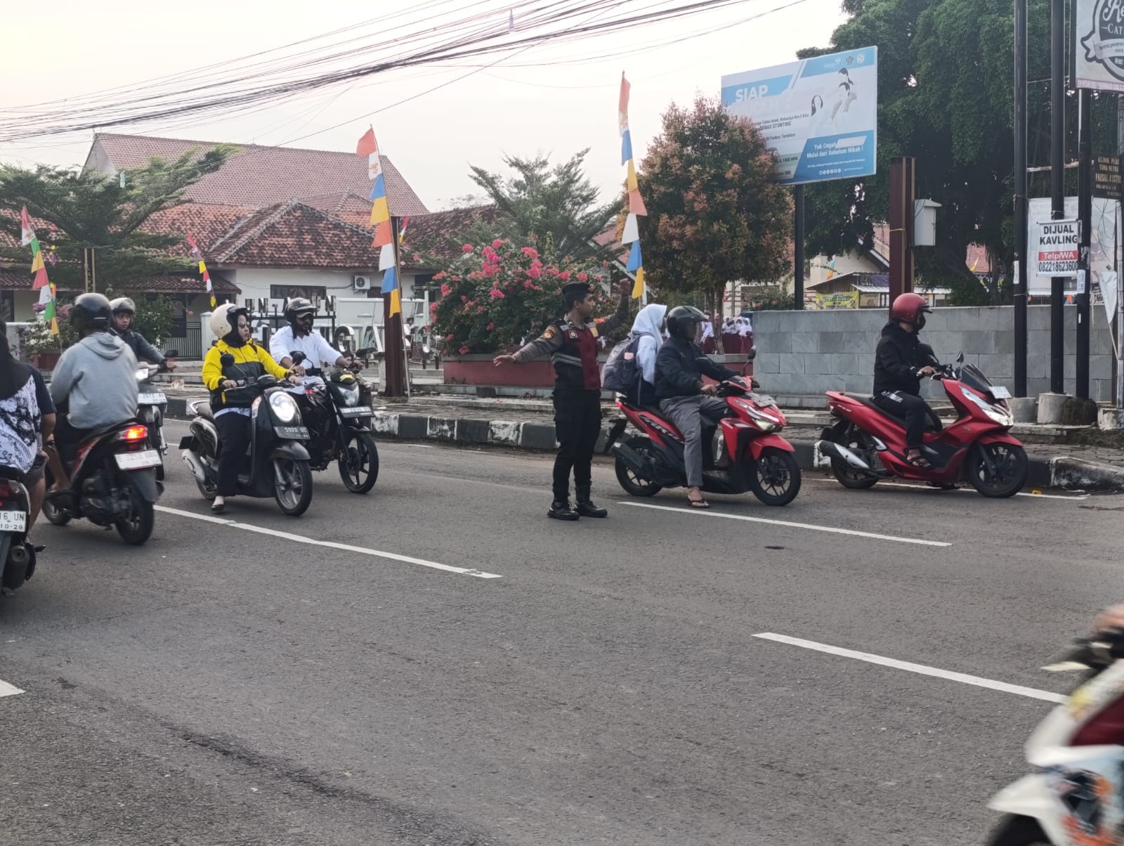 Majalengka // Zonakabar.com – Untuk menjamin keselamatan dan kelancaran lalu lintas masyarakat, Satuan Samapta Polres Majalengka melaksanakan kegiatan pengaturan lalu lintas pada Senin pagi. Pengaturan dilakukan di titik-titik rawan kemacetan serta kawasan yang kerap dilalui pelajar dan pekerja saat jam sibuk. Langkah ini merupakan bentuk pelayanan kepolisian dalam menjaga ketertiban dan mencegah terjadinya kecelakaan di jalan raya. (Senin, 25 Agustus 2025).