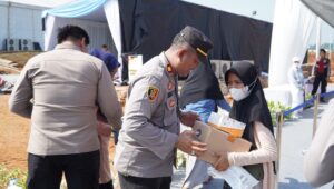 Sebagai bentuk kepedulian sosial, Wakapolri menyerahkan bingkisan bakti sosial secara simbolis kepada masyarakat. Suasana penuh kehangatan terlihat dari senyum warga penerima bantuan, mencerminkan semangat kebersamaan Polri dengan masyarakat.