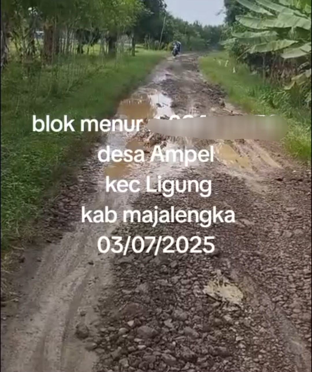 Majalengka // zonakabar.com – Warga masyarakat Desa Ampel, Kecamatan Ligung, Kabupaten Majalengka Jawa Barat keluhkan rusaknya kondisi jalan Desa tepatnya di Blok Menur Desa Ampel.