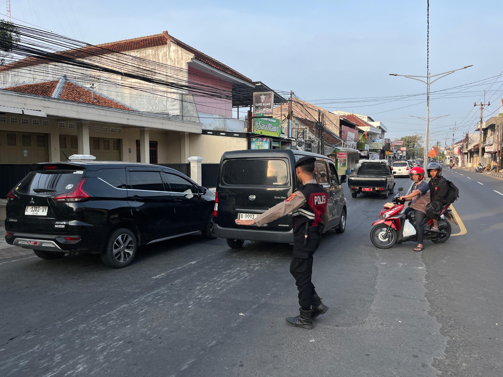 Selain pengaturan lalu lintas, personel juga melakukan imbauan kepada pengguna jalan agar tetap tertib, menjaga keselamatan, dan mematuhi rambu lalu lintas.