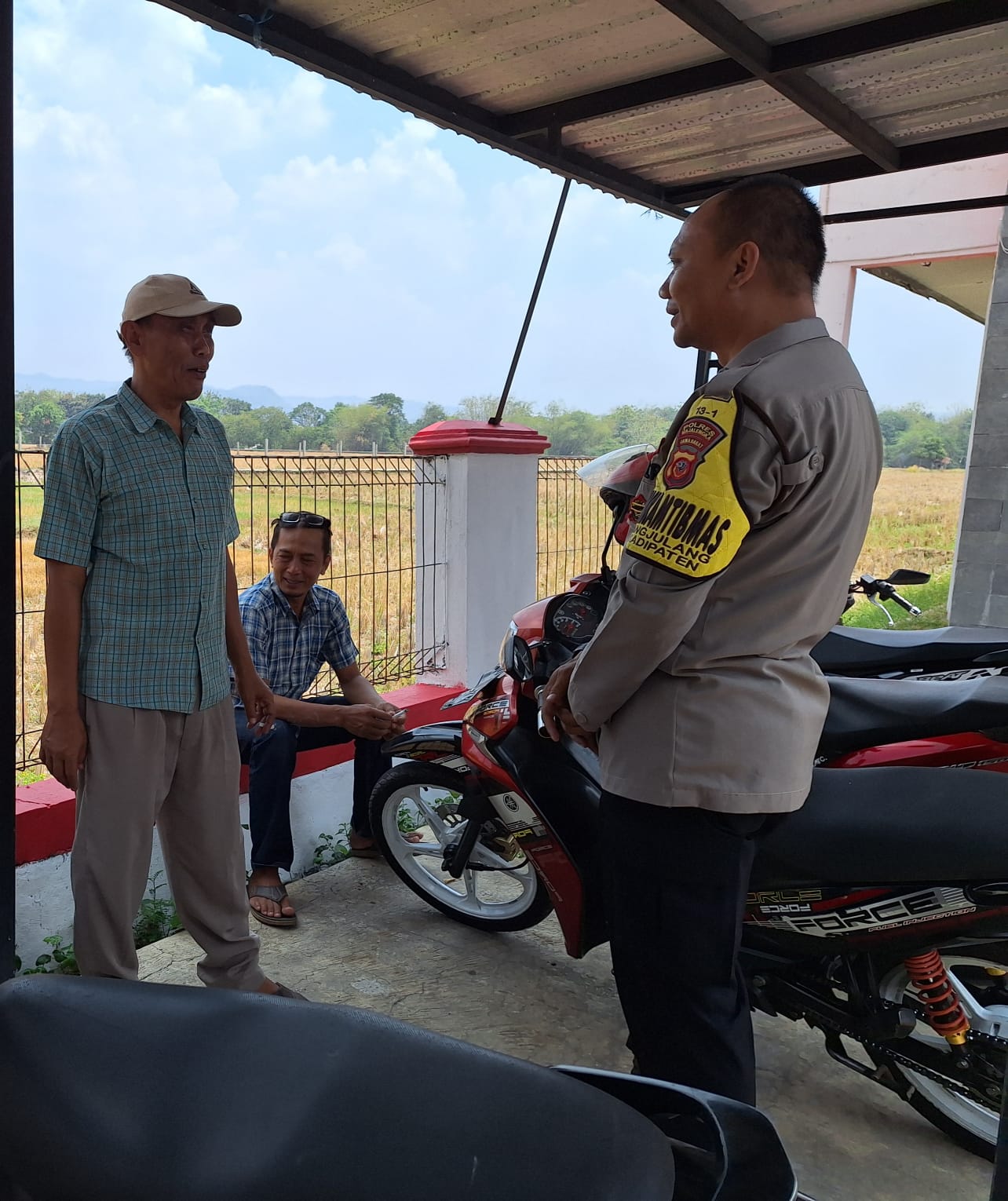 Kunjungan yang dilakukan oleh Bripka Atin disambut hangat oleh aparat desa serta warga yang tengah beraktivitas di lingkungan kantor desa. Dalam kesempatan tersebut, Bhabinkamtibmas menyampaikan pesan-pesan kamtibmas serta mengajak seluruh unsur masyarakat untuk bersama-sama menjaga keamanan dan ketertiban di wilayah masing-masing.